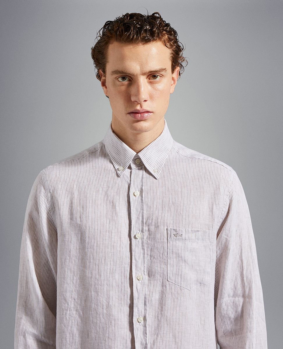 PAUL&SHARK: Chemise en lin, lignée beige, 23413106 21153